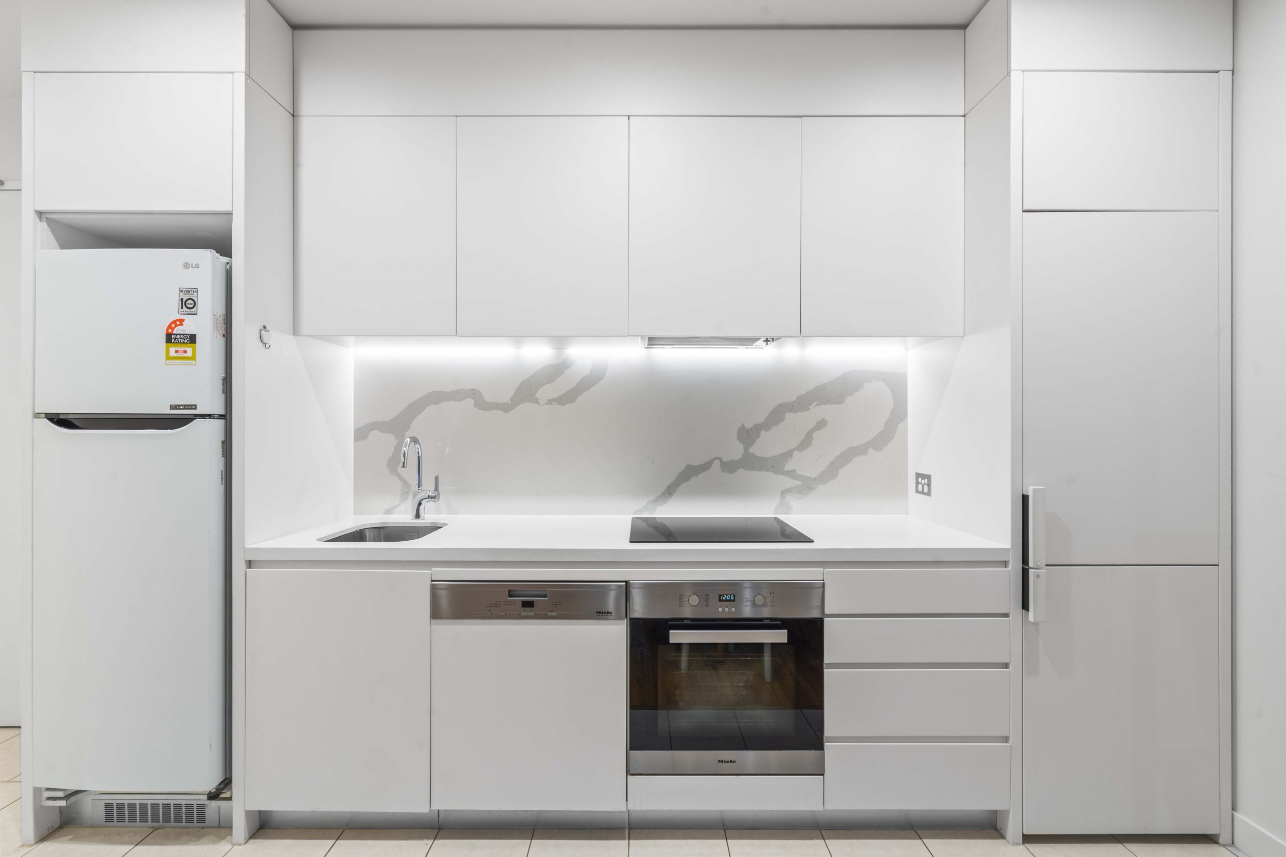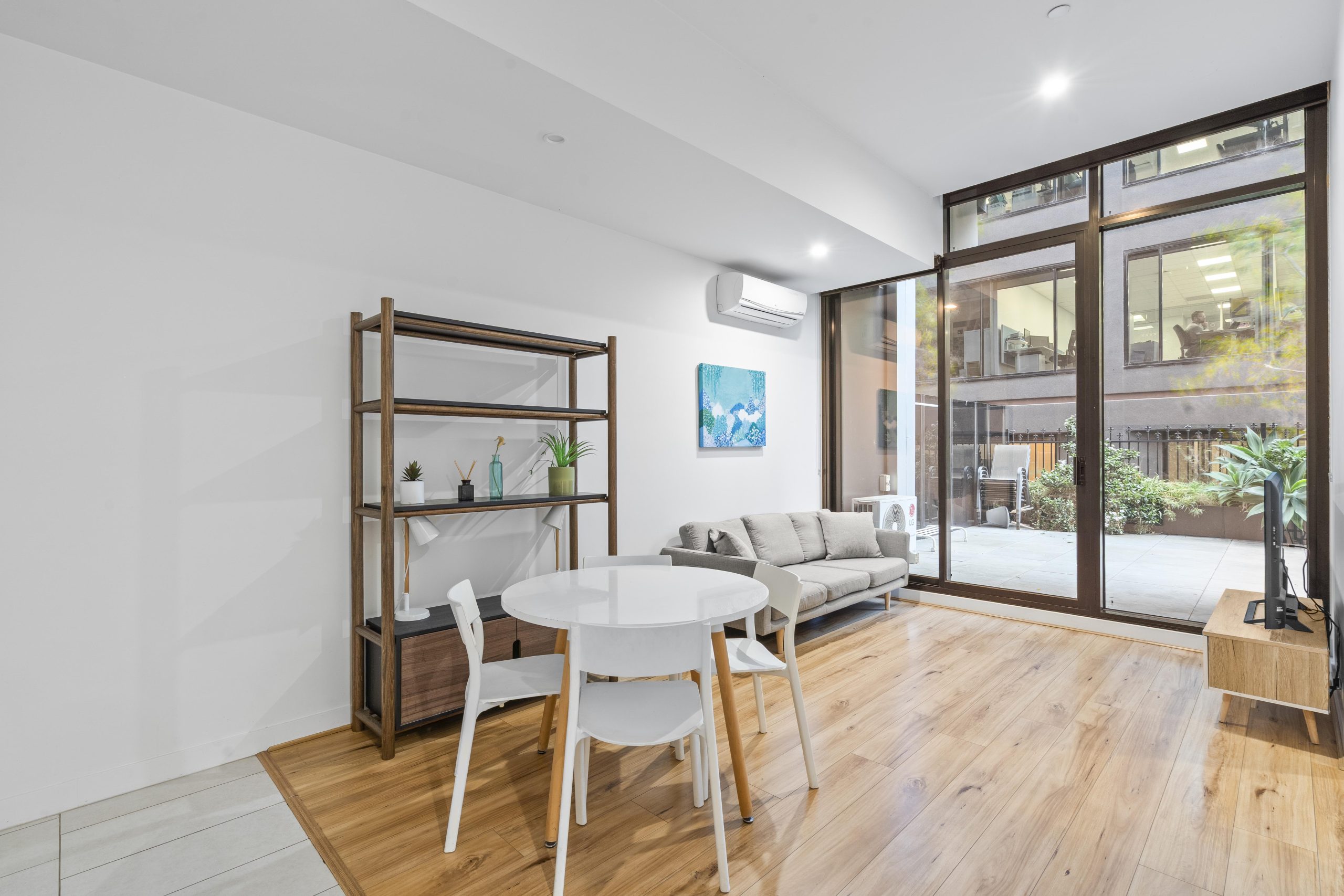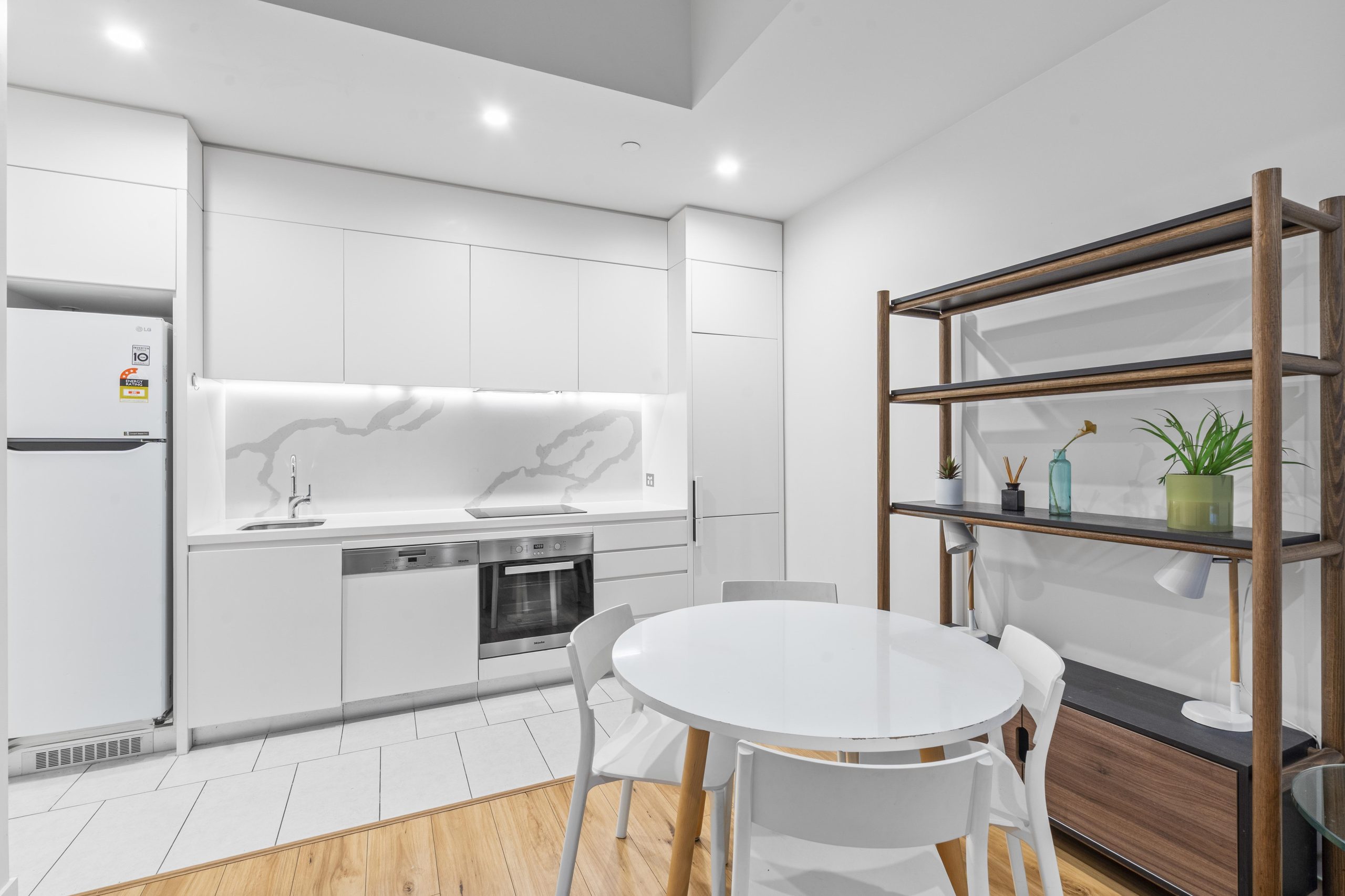 Generously proportioned, the open plan living and dining areas are seamlessly unified by floorboards, flowing effortlessly onto a private courtyard and extending your living space. The sleek, modern kitchen is a chef’s delight, featuring premium appliances, abundant storage, and contemporary cabinetry.
